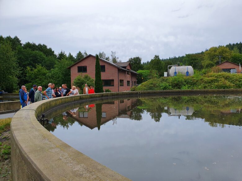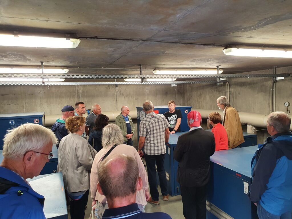Es wird das Abwasser von 39.000 Einwohner der Städte Reichenbach und Netzschkau gereinigt. Erstaunt waren die Anwesenden über die geringe Anzahl der Beschäftigten und dem kleinen Verwaltungsgebäude. Das gereinigte Abwasser wird nach der letzten Reinigungsstufe in die Göltzsch abgeleitet. Auch dafür muss der Zweckverband eine Abgabe zahlen. Trotzdem ist die zu zahlende Gebühr der Kunden geringer als bei vergleichbaren anderen Entsorgern. Matthias Röseler hatte auf alle Fragen eine Antwort, aber auch untereinander wurde über technische Belange diskutiert. Wie kann man die Abwärme der Kompressoren nutzen oder kann die Schlammentsorgung optimiert werden? Am Ende des Rundganges waren die Schirme geschlossen und es ging zurück mit dem Auto nach Netzschkau.